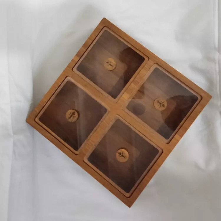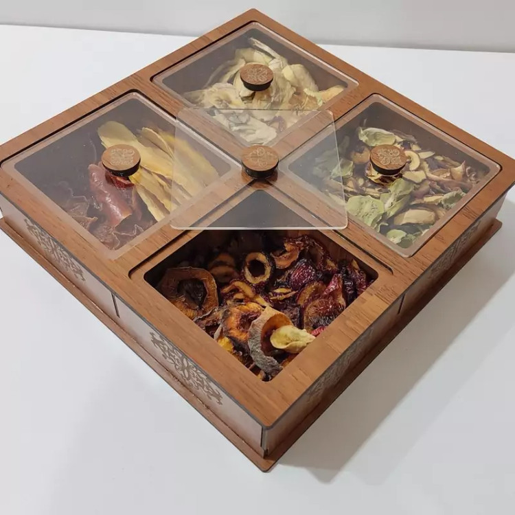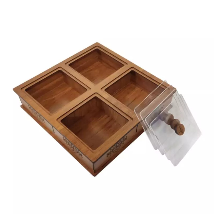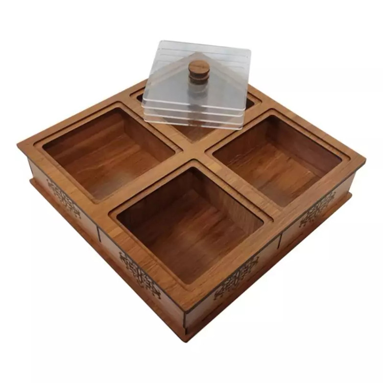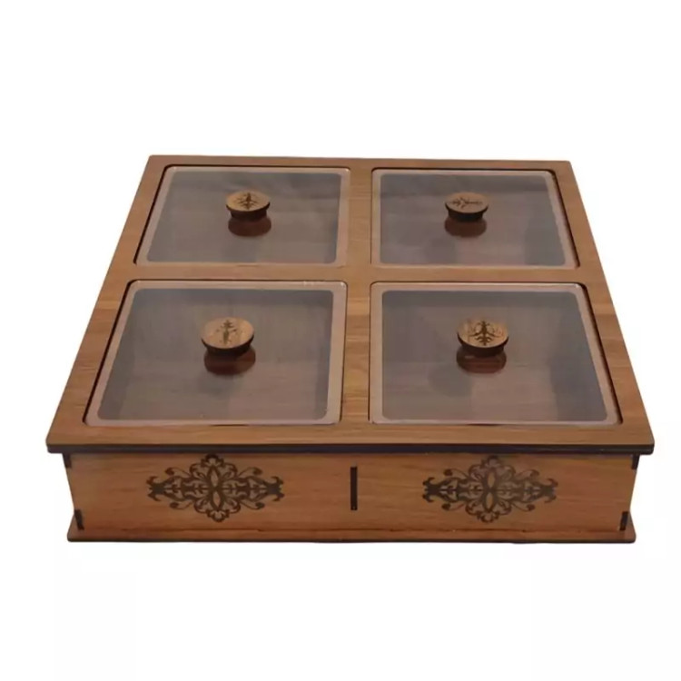 آجیل خوری 4 قسمتی با طرح اسلیمی همراه با درب شفاف ام دی اف 3 میل با کد C-12
