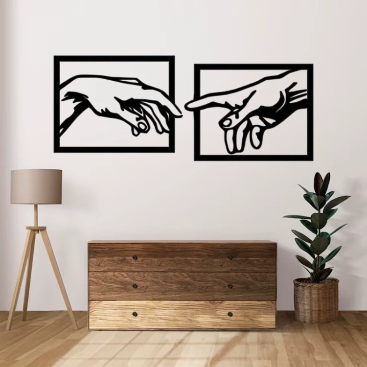 دیوارکوب چوبی مجموعه دو عددی طرح دست - استیکر دیوار با ابعاد 30 در 22.5 سانتی متر