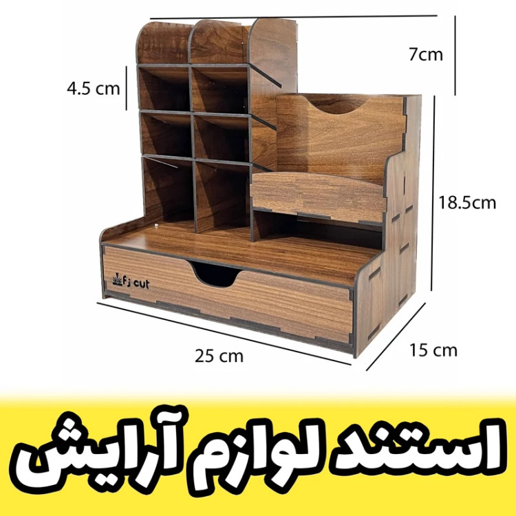 استند لوازم آرایشی چوبی مدل کشویی دارای مقسم کج برای نگهداری زیاد قلمو مداد آرایشی و لوازم التحریر
