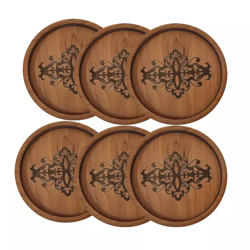 زیر لیوانی لبه دار به همراه جای زیرلیوانی با طرح اسلیمی بسته 6عددی