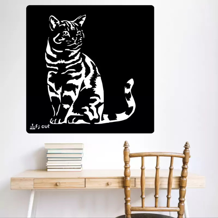تابلو چوبی دیوارکوب دکوراتیو منزل طرح گربه پیشو 59*59 سانتی متر