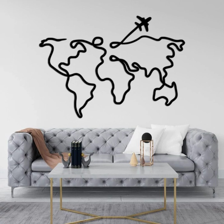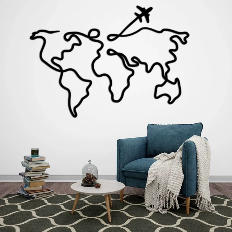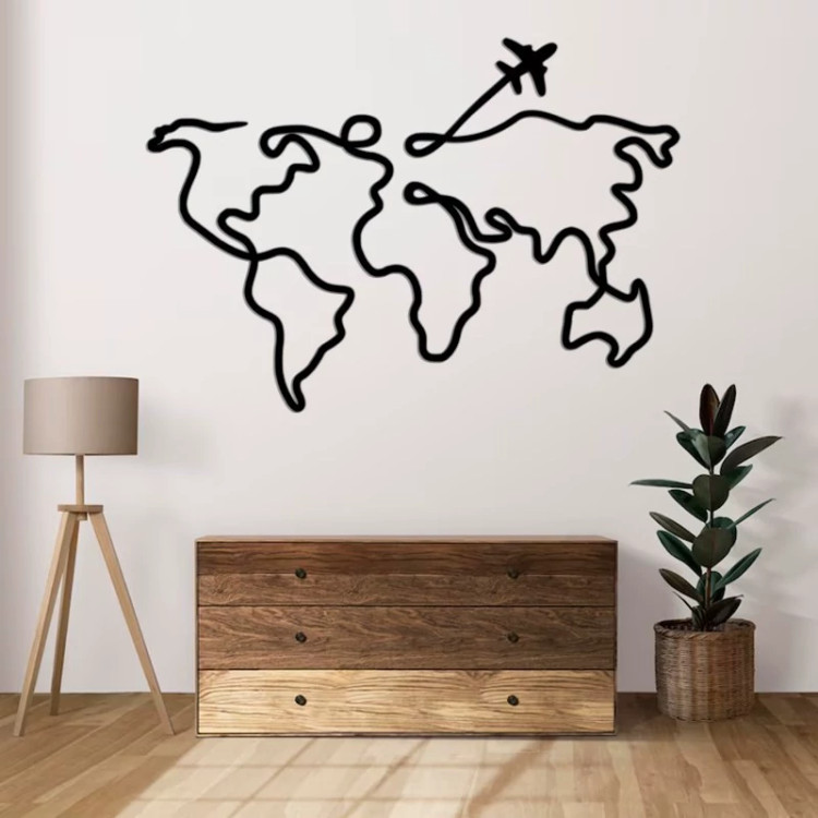 دیوارکوب چوبی نقشه جهان مدل هواپیما ابعاد 57 در 40 سانتی متر