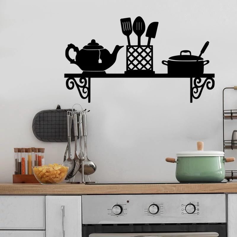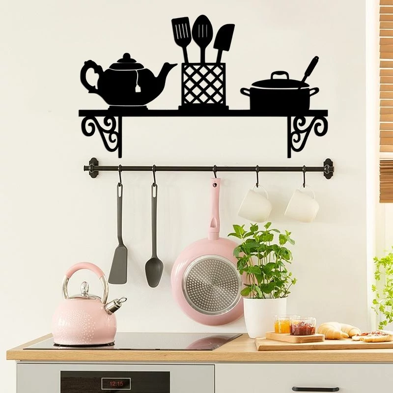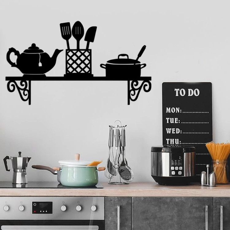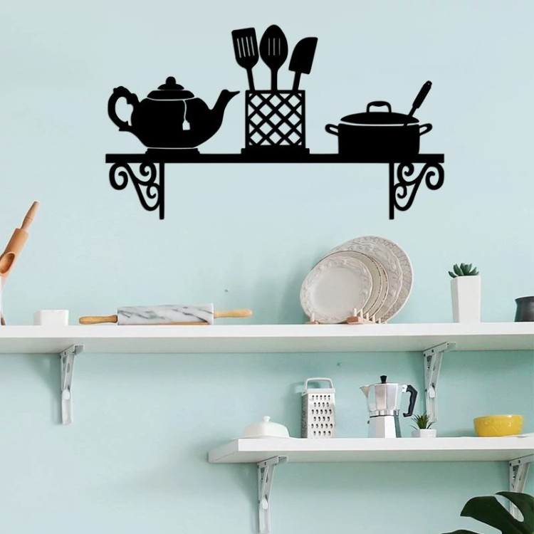 دیوارکوب چوبی طرح آشپزخانه مدل قوری و قابلمه ابعاد 40 در 23 سانتی متر