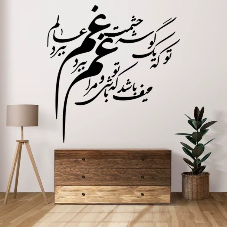 دیوارکوب چوبی مدل شعر یک گوشه چشمت غم عالم ببرد ابعاد 50 در 52 سانتی متر