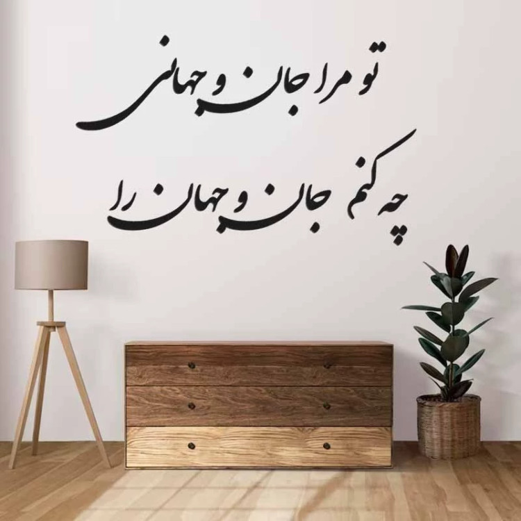دیوارکوب چوبی طرح شعر تو مرا جان و جهانی چه کنم جان و جهان را ابعاد 64 در 40 سانتی متر