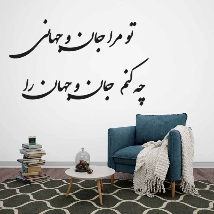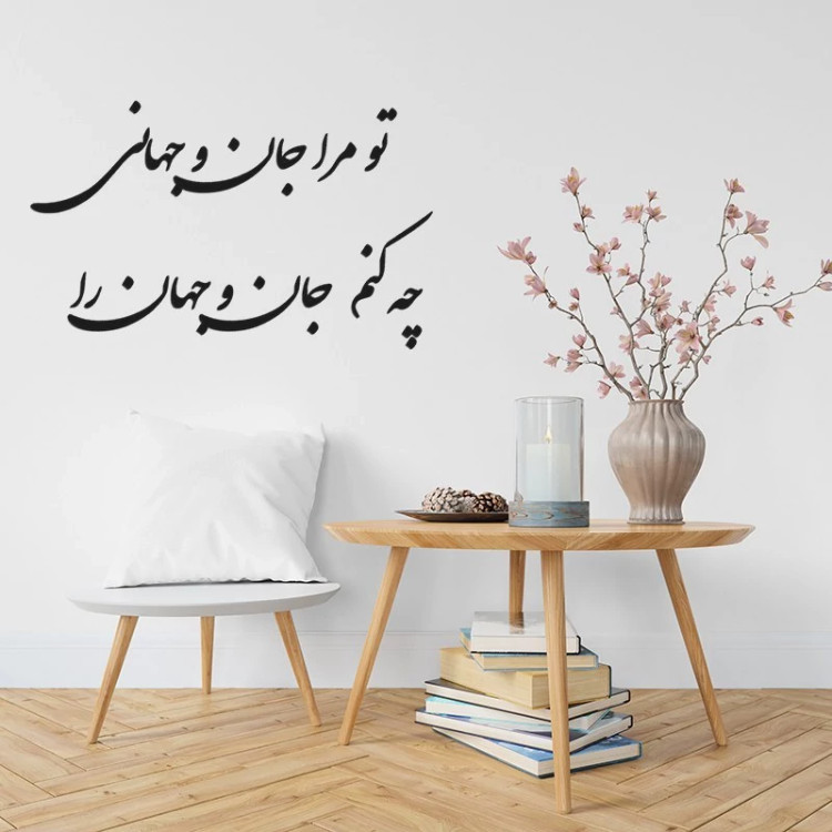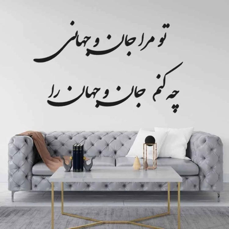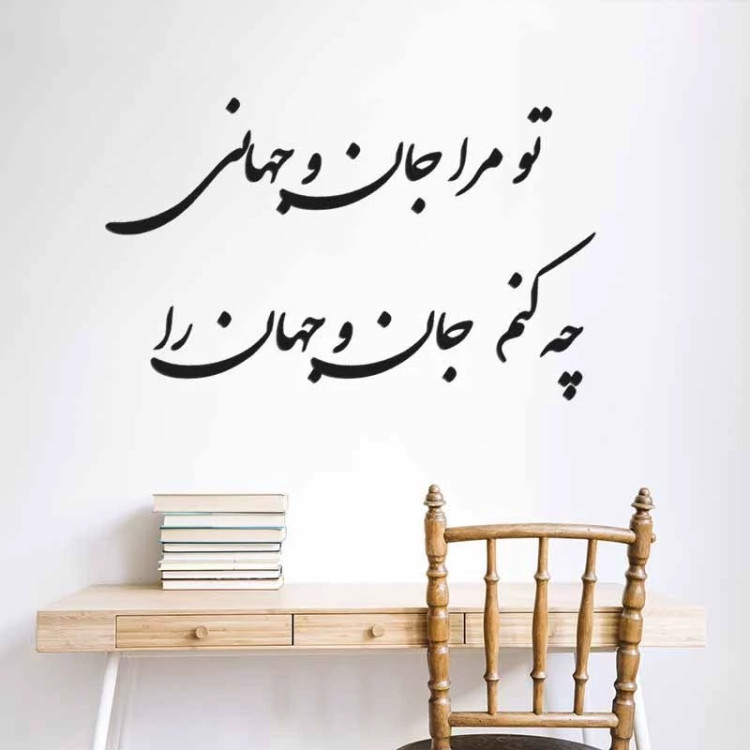 ✨ ویژگیهای اصلی تابلو: 🖋 شعر زیبای مولانا: شعر «تو مرا جان و جهانی» یکی از محبوبترین اشعار مولاناست که مفهومی عمیق از عشق، وابستگی و معنای زندگی را منتقل میکند. این شعر در دل هر بینندهای مینشیند و بار احساسی بالایی دارد. 🪵 ساختهشده از MDF سه میل: برای ساخت تابلو از MDF سه میلیمتر استفاده شده که استحکام بالا، وزن سبک و ظاهری زیبا دارد. چوب MDF به دلیل سطح یکنواخت، بهترین انتخاب برای کارهای ظریف خوشنویسی و دکوراتیو است. 📏 ابعاد مناسب و استاندارد: ابعاد تابلو پس از نصب کامل، 64 در 40 سانتیمتر است. این سایز نه تنها در دیوارهای بزرگ جلوه دارد، بلکه برای فضاهای کوچکتر هم مناسب است. 🧲 نصب آسان با چسب دوطرفه: بدون نیاز به میخ، پیچ یا ابزار خاص! پشت تابلو چسب دوطرفهی قوی قرار دارد که به راحتی روی دیوار، کمد، شیشه یا هر سطح صافی میچسبد. این ویژگی برای مستأجرها یا کسانی که نمیخواهند به دیوار آسیب بزنند بسیار کاربردی است. 🎨 خطاطی چشمنواز و هنرمندانه: تمامی نوشتهها با دقت و ظرافت طراحی شدهاند تا حس اصالت و هنر ایرانی را منتقل کنند. استفاده از فونت خوشنویسی سنتی، این تابلو را به یک اثر هنری تبدیل کرده است. 🎁 مناسب برای هدیه: اگر دنبال یک هدیه خاص، ماندگار و باارزش برای مناسبتهایی مثل روز عشق، تولد، سالگرد ازدواج، روز معلم یا افتتاح دفتر هستید، این تابلو گزینهای عالی است. 📌 مشخصات فنی محصول: جنس: MDF سه میل ابعاد نصبشده: 64 × 40 سانتیمتر نوع نوشته: خوشنویسی فارسی متن: «تو مرا جان و جهانی چه کنم جان و جهان را» روش نصب: چسب دوطرفه مقاوم (همراه تابلو) رنگ: قهوهای طبیعی چوب با نوشتههای تیره مناسب برای: دکور منزل، اتاق خواب، سالن پذیرایی، دفتر کار، کافیشاپ، گالری، هدیه و... ✅ مزایا در یک نگاه: طراحی خاص و دستساز نصب سریع بدون ابزار مناسب برای تمام فضاها شعر عاشقانه و احساسی کیفیت ساخت بالا قیمت مناسب نسبت به تابلوهای مشابه تولید ایرانی با افتخار 🇮🇷 💬 چرا این تابلو را انتخاب کنم؟ در دنیایی پر از تکرار و اجناس بیروح، چیزی که فضا را متمایز میکند احساس، هنر و معناست. این تابلو فقط یک شیء تزئینی نیست؛ یک پیام احساسیست، یک تکه از ادبیات کلاسیک ایران، و یک بیان ظریف از عشق. مناسب کسانی که به شعر علاقه دارند، هنردوست هستند یا میخواهند محیطی آرام و پرانرژی داشته باشند.