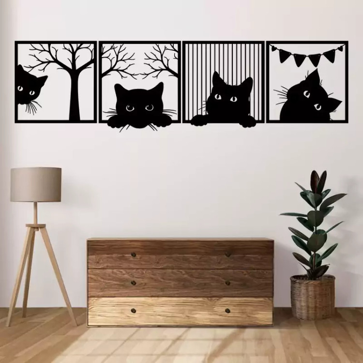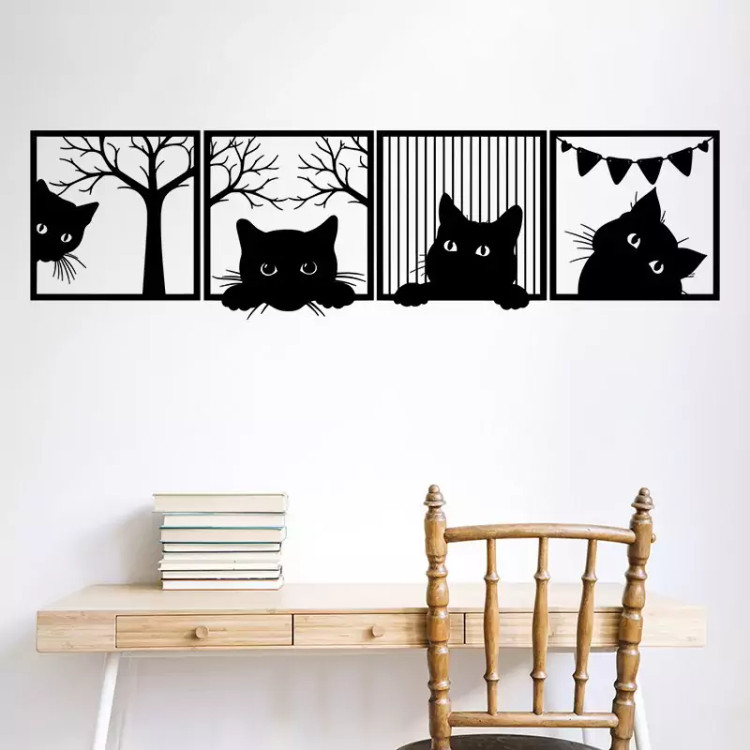 دیوارکوب طرح گربه مجموعه 4 عددی ابعاد 120 در 33 سانتی متر