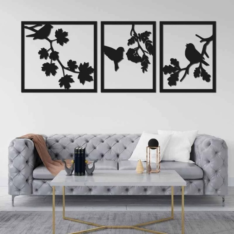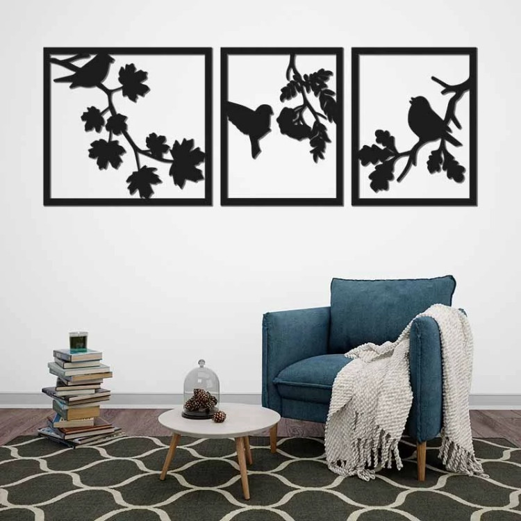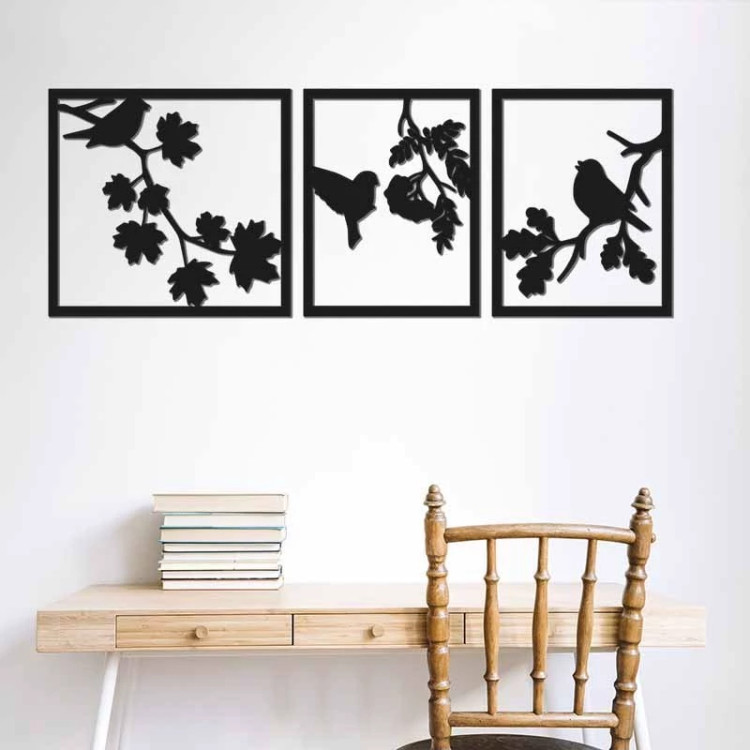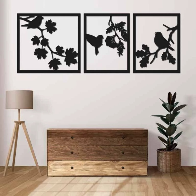 دیوارکوب چوبی سالنی سه تیکه طرح درخت و پرنده با ابعاد کلی 120 در 45 سانتی متر