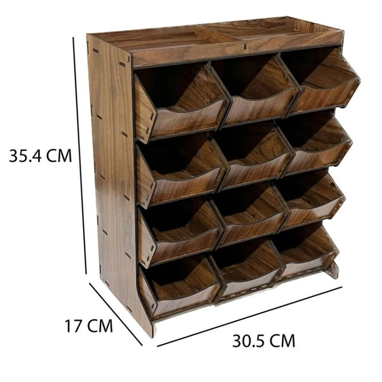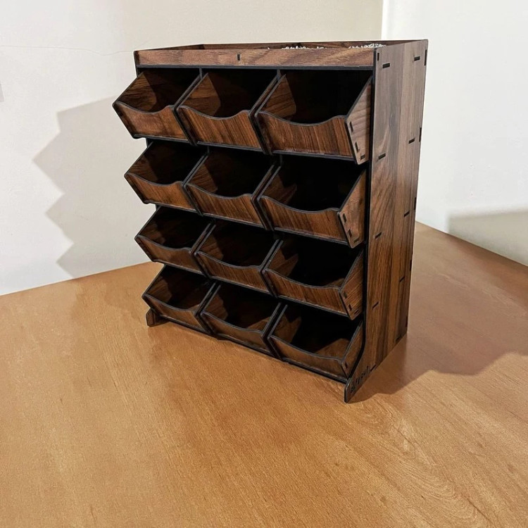 جعبه نظم دهنده ابزار چوبی دارای 12 فایل کشویی مناسب ابزار سبک و کوچک - بسیار جا دار