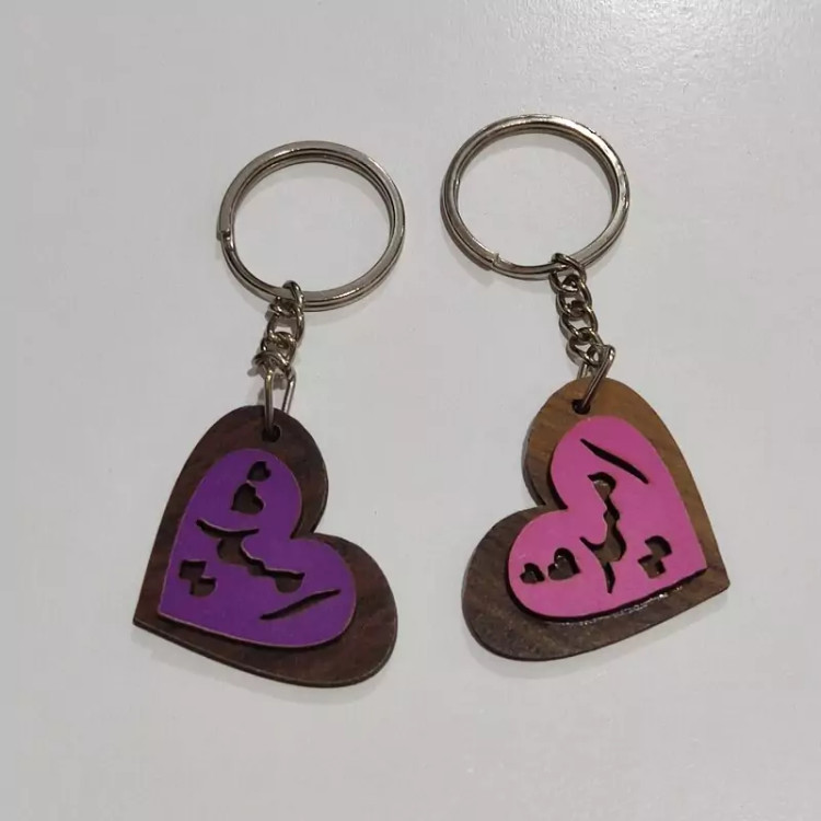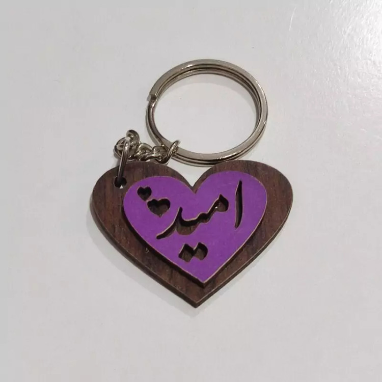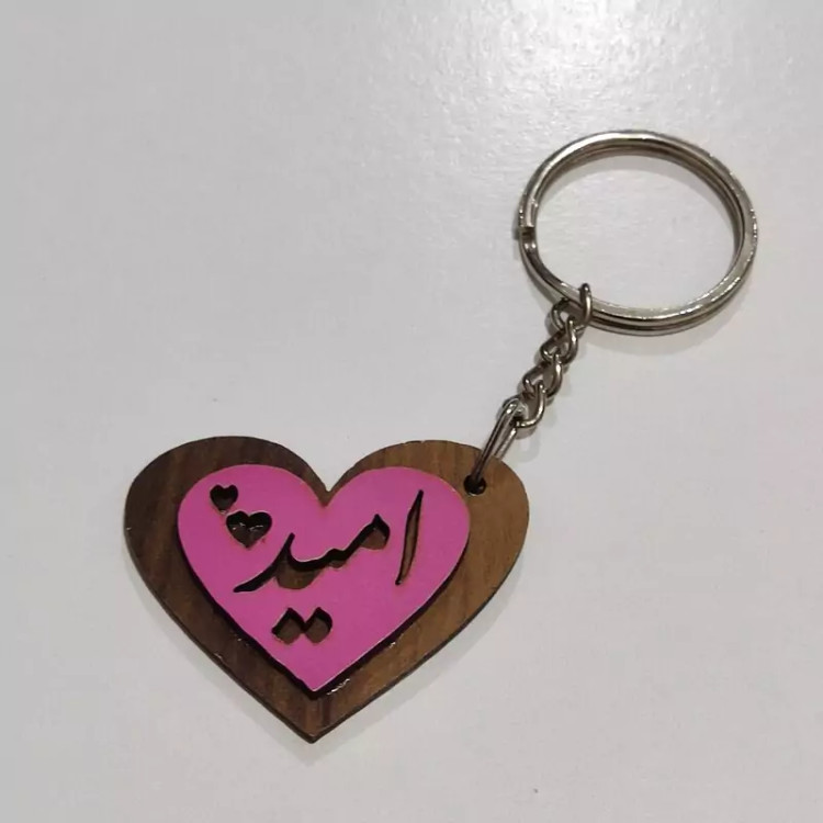 دست کلید چوبی (پاسوییچی) قلبی شکل با اسم و رنگبندی دلخواه