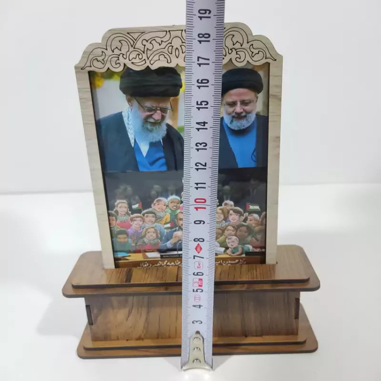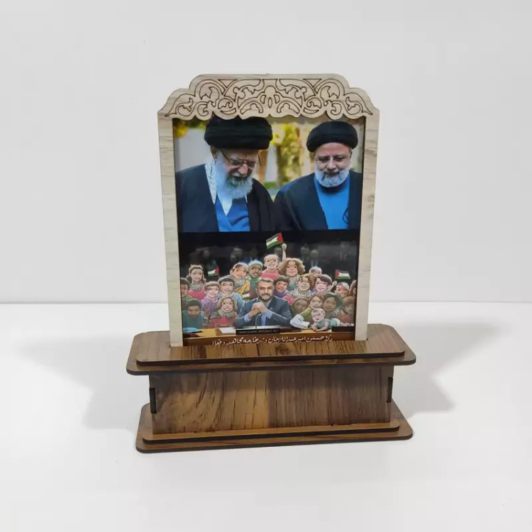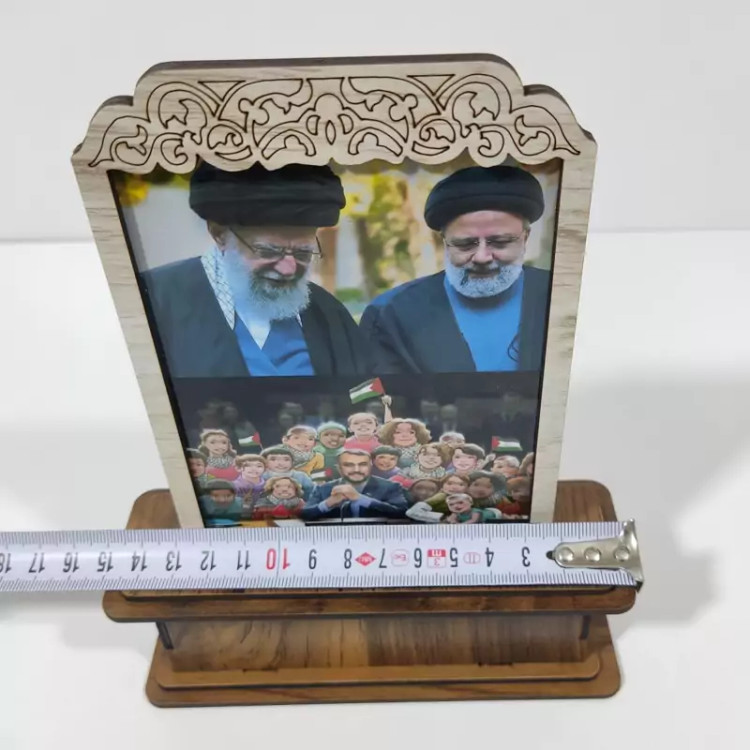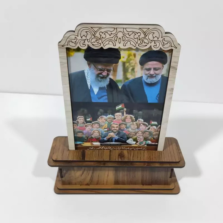 تندیس شهید رییسی و شهید امیر عبداللهیان و رهبر انقلاب اسلامی در ساخته شده با چوب mdf با ابعادی معمولی جهت استفاده روی میز کار، روی میز تلویزیون و حتی مناسب هدیه دادن