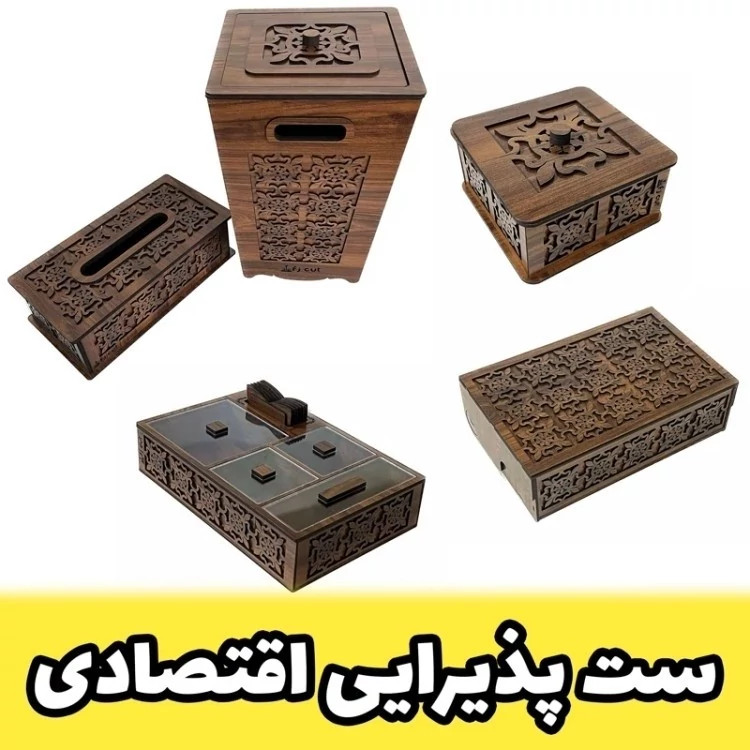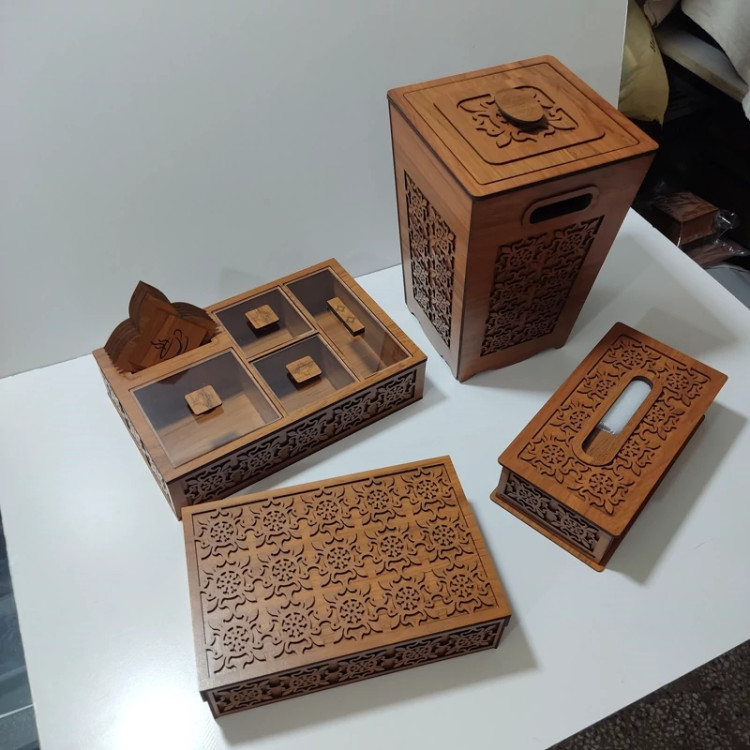 ست پذیرایی جعبه خشکبار و شکلات و جا دستمالی و جاکاردی و سطل زباله
