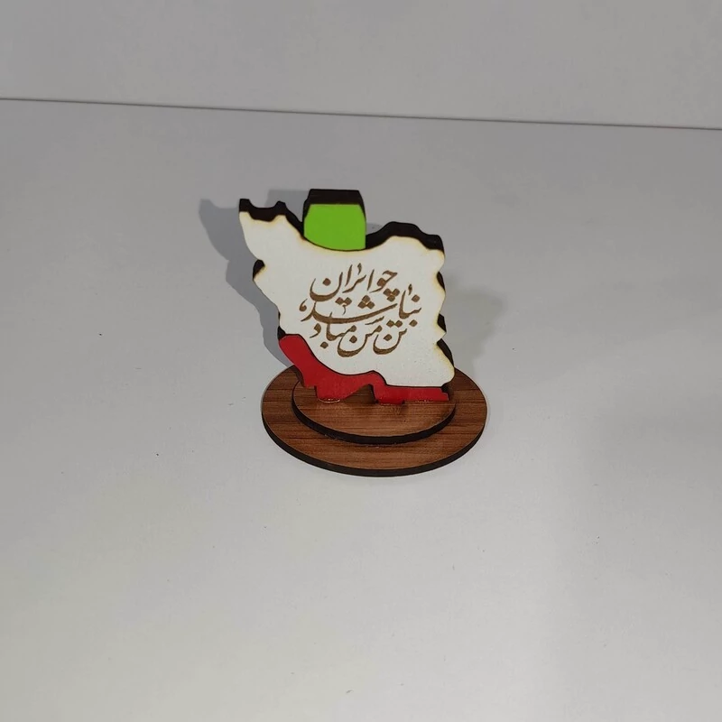 مینی استند تبلیغاتی رومیزی نقشه ایران چوبی - با حک شعر (چو ایران نباشد تن من مباد) بسته 50عددی